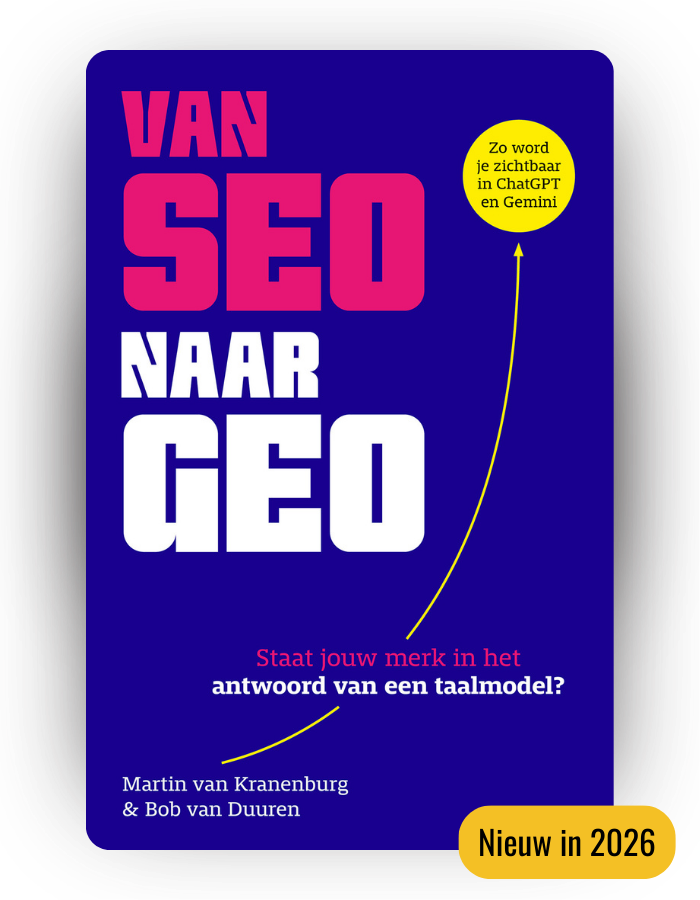 Ja, stuur maar {"blockElement":{"id":21063989,"pages_block_id":2827176,"uuid":"fb3da231-3aaa-48f9-877d-0c81e22ac2c8","parent_id":21064255,"pages_block_element_type_id":20,"is_locked":false,"css_class":"element-fb3da231-3aaa-48f9-877d-0c81e22ac2c8","position":3,"theme_style_type":"button_primary","tag":null,"blockElements":[],"blockElementType":{"id":20,"name":"Button","tree_icon":"fa-sharp fa-light fa-square-arrow-right","name_clean":"button","category":"element","default_content":"Call to action","allow_nested_elements":false},"styles":[{"id":1000000031326694,"uuid":"4df6d624-0508-41b7-8cd6-af5b4bebc323","type":null,"identifier":".element-fb3da231-3aaa-48f9-877d-0c81e22ac2c8","target_device":"desktop","media_query":null,"classes":["mt-[8px]","mb-[8px]","self-center"],"hover_classes":[],"keyed_classes":{},"animations":[],"css":null,"meta":null},{"id":1000000031326695,"uuid":"d92d2bcd-2209-4484-8b50-e434a68d0ffe","type":null,"identifier":".element-fb3da231-3aaa-48f9-877d-0c81e22ac2c8","target_device":"mobile","media_query":null,"classes":[],"hover_classes":[],"keyed_classes":{},"animations":[],"css":null,"meta":null}],"content":"<span class=\"button-span\">Ja, stuur maar <i data-icon=\"fas fa-chevron-right\"><svg class=\"svg-inline--fa chevron-right fa-w-14\" ariaHidden=\"true\" dataPrefix=\"fas\" dataIcon=\"chevron-right\" fill=\"currentColor\" role=\"img\" viewBox=\"0 0 320 512\"><path d=\"M310.6 233.4c12.5 12.5 12.5 32.8 0 45.3l-192 192c-12.5 12.5-32.8 12.5-45.3 0s-12.5-32.8 0-45.3L242.7 256 73.4 86.6c-12.5-12.5-12.5-32.8 0-45.3s32.8-12.5 45.3 0l192 192z\"></path></svg></i></span>","content_options":{"type":"open_popup","popUpOptions":{"option":"popup","showProgress":true,"title":"Blijf op de hoogte","description":"Krijg een blik achter de schermen en een e-mail alert als het boek klaar is","images":[{"mediaFileId":1326406,"url":"https://aws.cdn-plugandpay.com/media/tenants/40510/202603/26cfb18fc1d628faa7dbfda1cec345c5-van-seo-naar-geo-cover.png"}],"popVariant":"FORMPOPUP","iframe":null},"formStyle":"0","custom_styling":[]},"form":{"id":11370,"redirect_url":null,"name":"Op de hoogte blijven van het boek","schema":[{"id":136678,"$formkit":"text","name":"first_name","label":"Wat is je voornaam?","placeholder":"Wat is je voornaam?","validation":"required","order":0,"options":{"pendingAttributes":[]}},{"id":136679,"$formkit":"email","name":"email","label":"Wat is je beste e-mailadres?","placeholder":"Vul hier je beste e-mailadres in","validation":"required|email","order":1,"options":{"pendingAttributes":[]}},{"id":136680,"$formkit":"submit","name":"submit","label":"Versturen","placeholder":"Versturen","validation":"optional","order":2,"options":{"pendingAttributes":[]}}],"socialsSettings":null,"thank_you_confirmation_text":"Leuk dat ik je op de hoogte mag houden, :first_name!","type":"opt-in"},"linkable":null,"images":[],"copied_from_block_element_id":null},"theme":{"id":517562,"uuid":"b7c140cb-7b2c-40e0-9018-a537c50135c7","name":"Van SEO naar GEO","is_global":true,"is_default":true,"text_font_size":"16px","text_font_size_mobile":"14px","text_font_family":"Inter","text_font_color":"#304352","text_font_weight":"400","text_line_height":"1.5","text_line_height_mobile":"1.5","text_letter_spacing":"0px","headings_1_font_size":"45px","headings_1_font_size_mobile":"34px","headings_1_font_family":"Anton","headings_1_font_color":"#0F172A","headings_1_font_weight":"700","headings_1_line_height":"1.5","headings_1_line_height_mobile":"1.5","headings_1_letter_spacing":"0px","headings_2_font_size":"40px","headings_2_font_size_mobile":"30px","headings_2_font_family":"Poppins","headings_2_font_color":"#0F172A","headings_2_font_weight":"600","headings_2_line_height":"1.5","headings_2_line_height_mobile":"1.5","headings_2_letter_spacing":"0px","headings_3_font_size":"35px","headings_3_font_size_mobile":"24px","headings_3_font_family":"Poppins","headings_3_font_color":"#0F172A","headings_3_font_weight":"600","headings_3_line_height":"1.5","headings_3_line_height_mobile":"1.5","headings_3_letter_spacing":"0px","headings_4_font_size":"18px","headings_4_font_size_mobile":"16px","headings_4_font_family":"Merriweather","headings_4_font_color":"#0F172A","headings_4_font_weight":"600","headings_4_line_height":"1.25","headings_4_line_height_mobile":"1.25","headings_4_letter_spacing":"0px","primary_color":"#e72078","secondary_color":"#302a85","background_color":"#f2f5f8","max_width":"1170px","styles":[{"id":1000000031325829,"uuid":"b86acffa-f6ce-435e-9c3c-75713f959b9f","type":"button_primary","identifier":null,"target_device":"desktop","media_query":null,"classes":["inline-block","cursor-pointer","font-semibold","font-['Inter']","text-[length:16px]","tracking-[0px]","leading-[1.5]","pt-[8px]","pb-[8px]","bg-[var(--primary-color)]","text-[#ffffff]","rounded-md","border-2","border-solid","text-center","border-[var(--primary-color)]","transition-all","duration-200","ease-in-out","pl-[32px]","pr-[32px]"],"hover_classes":["scale-[1.06]"],"keyed_classes":{},"animations":[],"css":null,"meta":null},{"id":1000000031325830,"uuid":"3cb64ca2-482c-427c-a3bc-18c5ef4a04b1","type":"button_primary","identifier":null,"target_device":"mobile","media_query":null,"classes":[],"hover_classes":[],"keyed_classes":{},"animations":[],"css":null,"meta":null},{"id":1000000031325831,"uuid":"696202b4-2db9-436d-b235-2983452a6179","type":"button_secondary","identifier":null,"target_device":"desktop","media_query":null,"classes":["inline-block","cursor-pointer","font-semibold","font-['Inter']","text-[length:16px]","tracking-[0px]","leading-[1.5]","pl-[12px]","pr-[12px]","pt-[8px]","pb-[8px]","bg-[var(--secondary-color)]","text-[#ffffff]","rounded-md","border-2","border-solid","text-center","border-[var(--secondary-color)]","transition-all","duration-200","ease-in-out"],"hover_classes":["scale-[1.06]"],"keyed_classes":{},"animations":[],"css":null,"meta":null},{"id":1000000031325832,"uuid":"44113331-6f69-4f8f-b94e-2af55d402424","type":"button_seconda